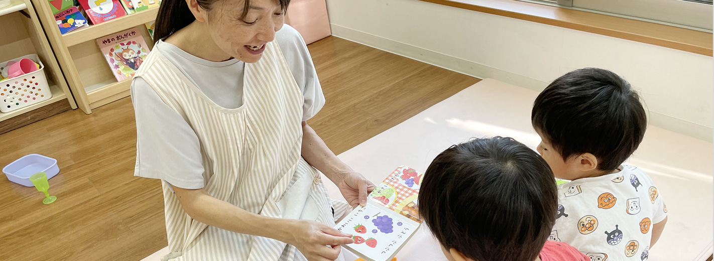 当園では、絵本や歌、ゲームなどを取り入れた「楽しい英語教室」を行っています。